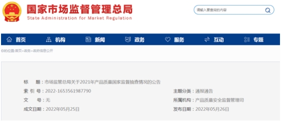 2021年國家監(jiān)督抽查結(jié)果已通過市場(chǎng)監(jiān)管總局網(wǎng)站分批向社會(huì)公布,公眾可通過市場(chǎng)監(jiān)管總局網(wǎng)站“政務(wù)-總局文件-通報(bào)通告”欄目查詢不合格產(chǎn)品信息。