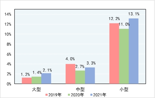 圖2 近三年大中小型企業(yè)產(chǎn)品國家監(jiān)督抽查不合格率對(duì)比圖